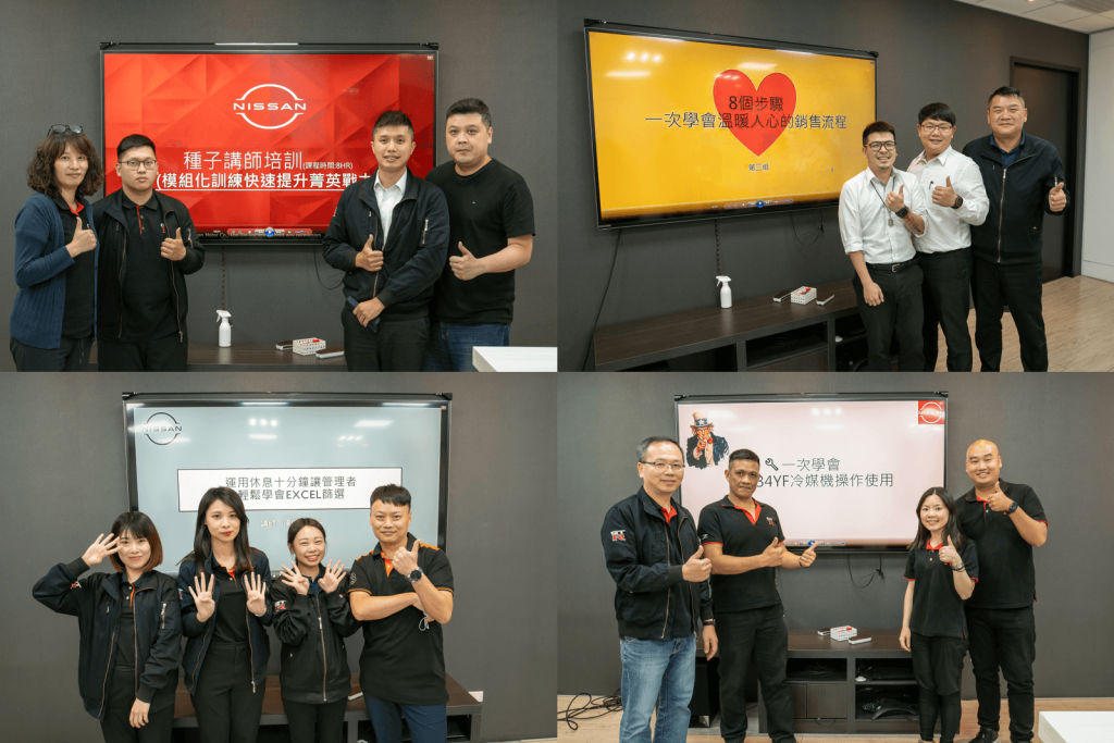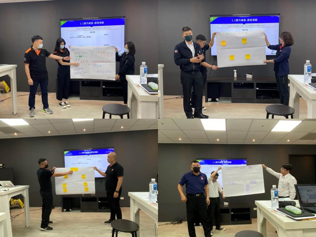 各組產出的課程規劃很明確地看到如何解決實務問題,以新車銷售為主的小組提出銷售心法、種子講師培訓的課程;保修服務組則是提出冷媒機介紹與維修、Excel管理技巧,各組也從設計概念繼續往下發展成課程教材。
